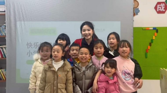 在街道党政办,她将专业知识运用于医保参保率统计,感受到基层工作的严谨与温度;在春运期间的火车站,她服务旅客、开展反诈宣传,用行动守护出行安全;在社区“爱心托管班”,她为留守儿童开设公益课堂,点燃教育的希望之光。