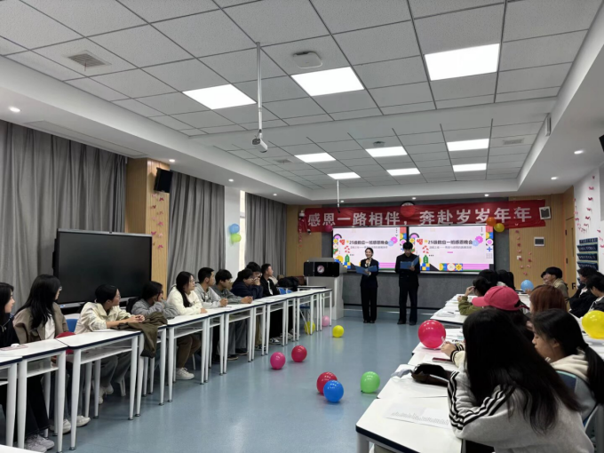 为培育新生感恩意识,传承中华优秀感恩文化;同时为刚步入校园的2025 级新生搭建交流桥梁、提供“破冰”契机,近日,我院2025级新生以班级为单位陆续开展感恩晚会。2025级辅导员、学生会骨干与新生共同参与,在温馨氛围中共赴一场 “感恩之约”。