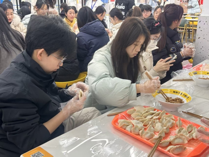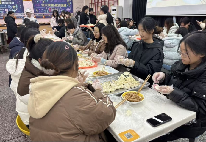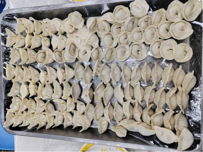 活动过程中,师生们自由组队,分工协作。包馅、捏边……一道道工序在默契配合中流畅进行。老师们手法娴熟,耐心指导;同学们兴致盎然,积极尝试,从生疏到熟练,创意层出不穷,元宝形、月牙形、花朵状等各式各样的饺子纷纷呈现在案板之上。期间,大家畅谈家乡的冬至习俗、交流学习生活趣事,现场气氛热烈融洽。当热气腾腾的饺子出锅时,师生们共同品尝着自己的劳动成果,分享着彼此的祝福与喜悦,冬日的寒意被浓浓的暖意驱散。