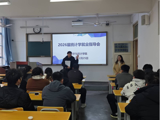 为扎实做好2026届毕业生就业指导与服务工作,引导学生树立正确的就业观,提升就业能力,2025年12月25日,数学与统计学院组织召开了毕业生就业指导专题会。学院就业工作办公室主任邹珊、毕业班辅导员马勇及全体毕业生参加了本次会议。